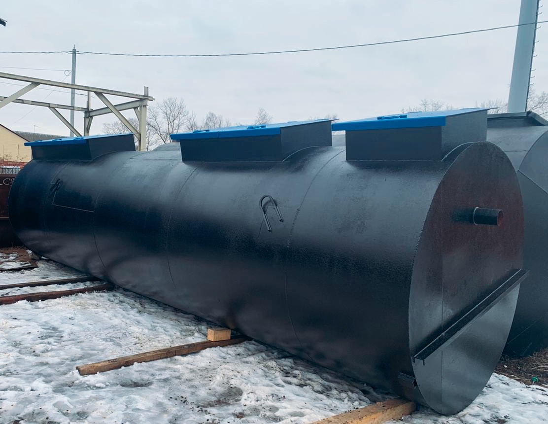 Габариты очистного сооружения: 3 емкости длиной 11600 / диаметром 2400 / весом 20700 кг.
